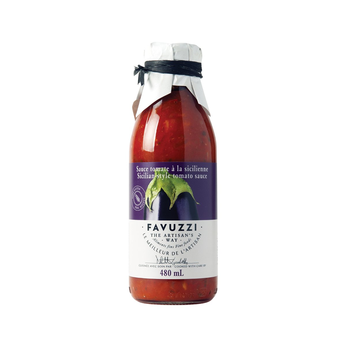 Notre sauce à la sicilienne est un consistant mélange de poivrons rouges et jaunes et de tomates broyés, auquel s’ajoutent des morceaux d’oignon et d’aubergine. Son goût évoque à la fois la ratatouille et la caponata.