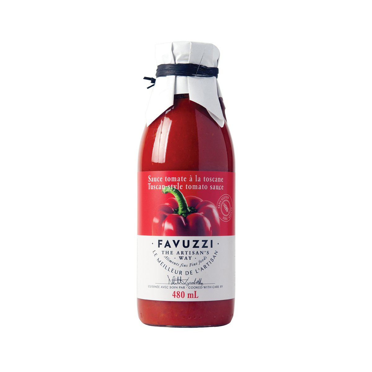 Notre sauce à la toscane est une compotée de tomates fondantes qui laisse percevoir un goût de poivron rouge caramélisé et une pointe d’ail. On pourrait la définir comme la plus « classique » des sauces italiennes, car toutes ses notes aromatiques s’harmonisent parfaitement pour répandre le goût de tomates fraîches.